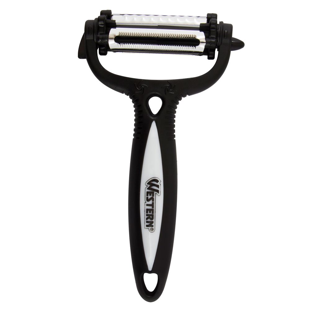 O produto possui descascadores produzidos com cabos emborrachados e lâminas em aço inox que cortam perfeitamente os mais diversos tipos de alimentos. O descascador giratório é perfeito para frutas e legumes mais sólidos como batata, cenoura e pepino, enquanto o serrilhado é ideal para frutas e verduras mais delicadas como tomate e ameixa. Já o descascador modelo Julienne é perfeito para tiras finas e precisas de cenoura abobrinha e muitos outros