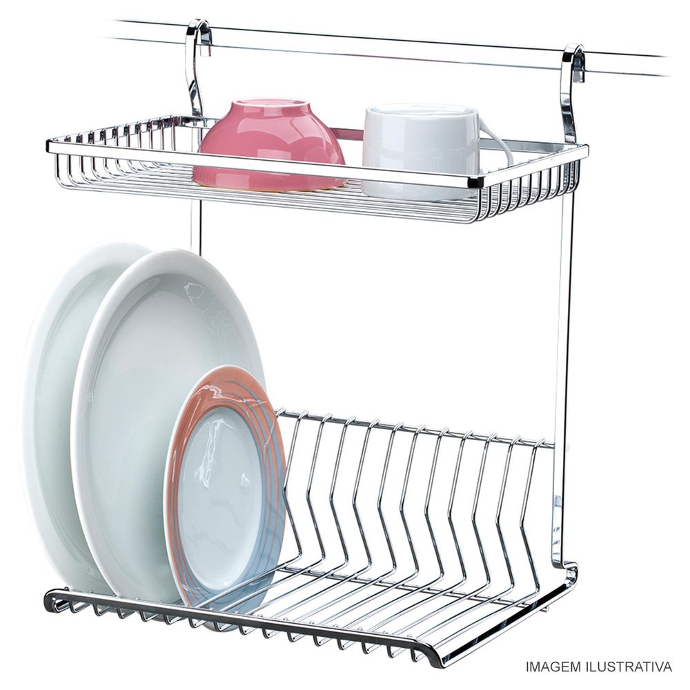 Para utilização em barras fixadas na parede, o Escorredor de Louças de Parede deixa mais espaço livre sobre a pia para você utilizar na preparação dos alimentos, possui capacidade para 15 pratos, além de espaço superior para copos.