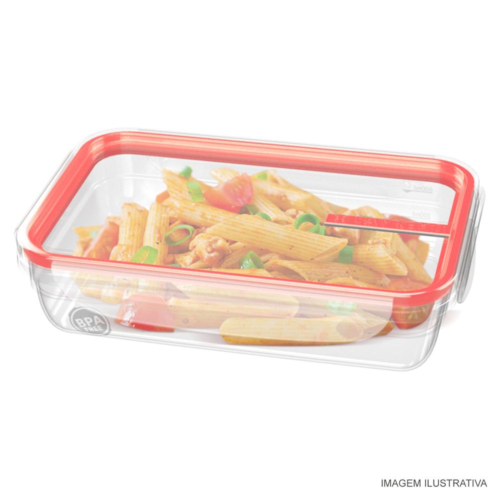 Pote com travas que mantém os alimentos frescos por muito mais tempo. O design funcional apresenta cantos arredondados e a borracha integrada para uma perfeita higienização. O pote são modulares e permitem o empilhamento seguro, deixando mais espaço na geladeira e armários. Desenvolvido com matéria prima virgem, pigmentos atóxicos BPA FREE, com total transparência permitindo a visualização perfeita do conteúdo que, quando armazenado, pode ser controlado pelas linhas de graduação de medidas.