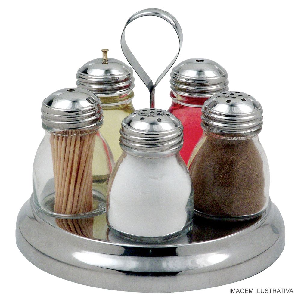 Galheteiro 5 Peças em Aço Inox Globo