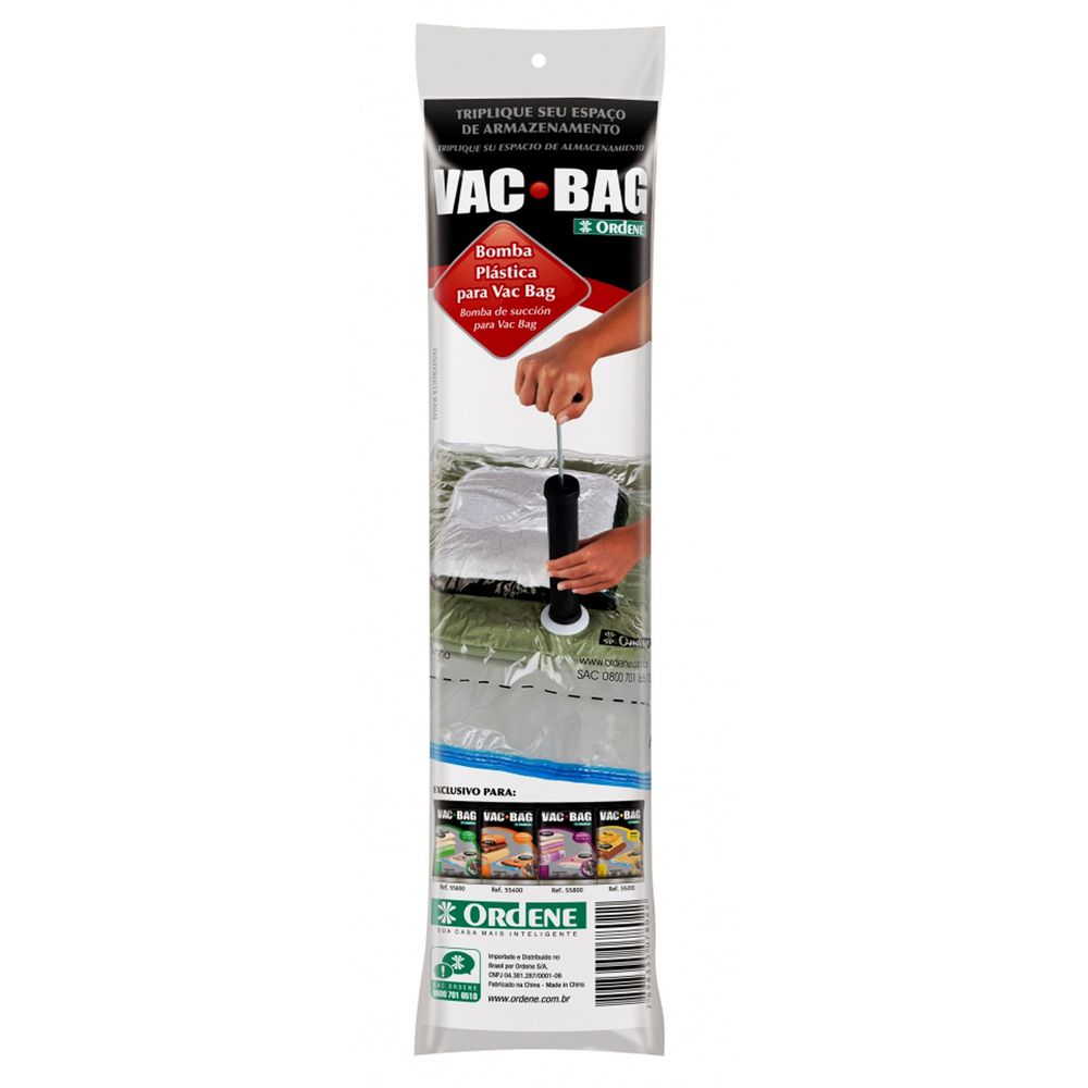 Com a bomba plástica para Vac Bag Ordene, armazenar aquelas roupas que não estão sendo usadas, cobertas, cobertores, toalhas, entre outros pertences que ocupam grande espaço em seus armários ficou ainda mais fácil. De fácil manuseio e super leve, vai tornar suas tarefas de organização ainda mais fáceis e rápidas.