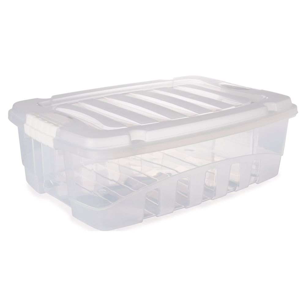 Caixa plástica organizadora com travas laterais ideais para armazenagem de produtos, alimentos, tecidos e etc.