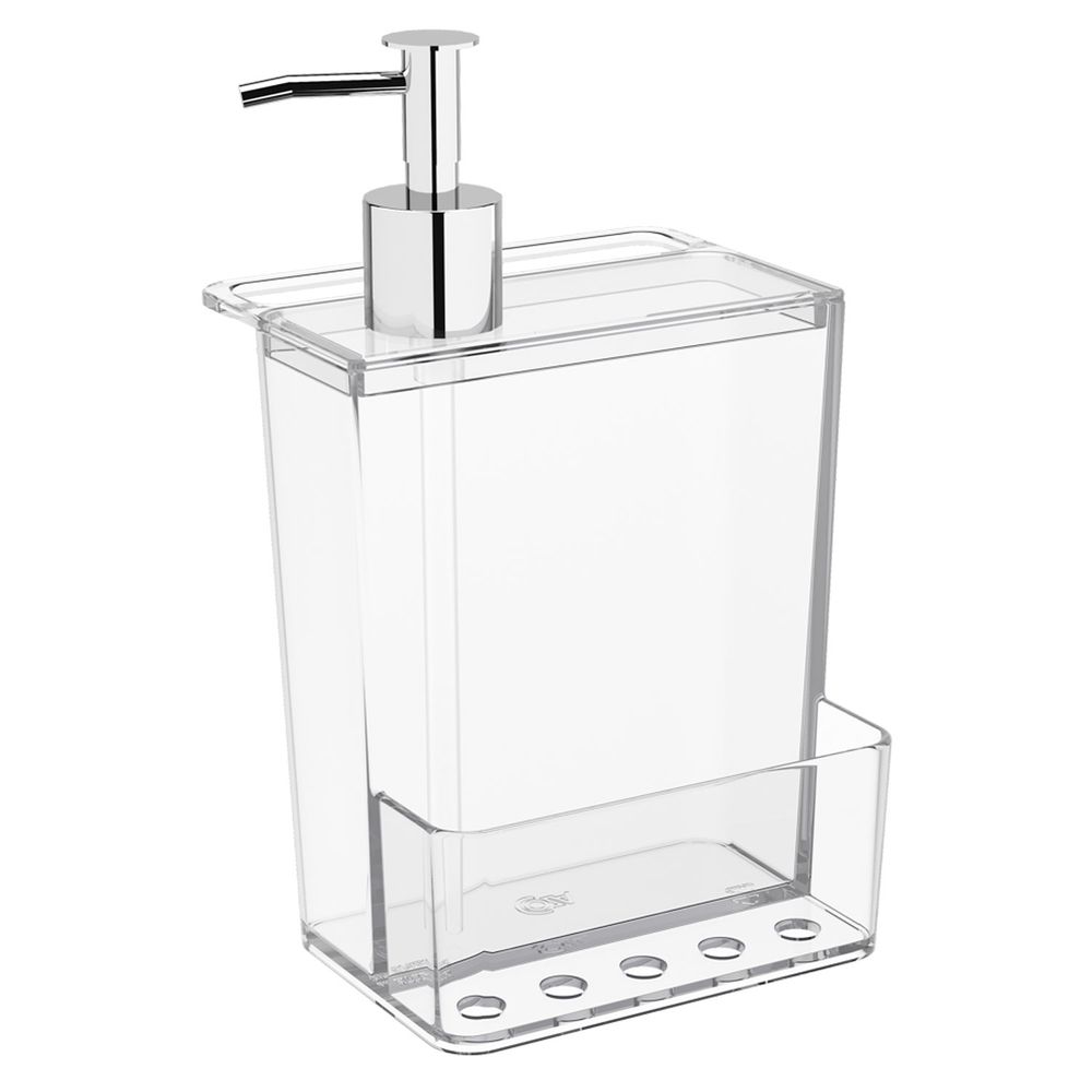 Na hora de manter a pia organizada, o Dispenser Multi, criado para a linha Sobre a Pia, cai como uma luva. O organizador de pia acomoda o detergente, a esponja e até mesmo o paninho para secar a pia, pois o produto tem uma alça especialmente para este fim, que o mantém sempre sequinho. Os furos internos evitam que a esponja fique em contato com a água e estrague. Sua pia vai ganhar um ar moderno e organizado. No compartimento do detergente, que comporta 600ml, o bico dosador também evita desperdícios.