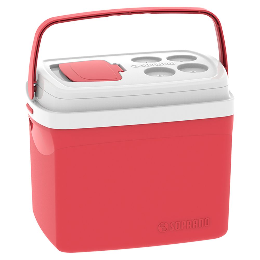 Exclusiva tampa de acesso rápido que facilita o uso, alças laterais embutidas, alça de mão articulável e retrátil, tampa com trava mais segura para levar, tampa comporta-copos numerados, isolamento térmico de isopor. Degelo de 24 horas. Produto com design premiado. Livre de Bisfenol (BPA Free).