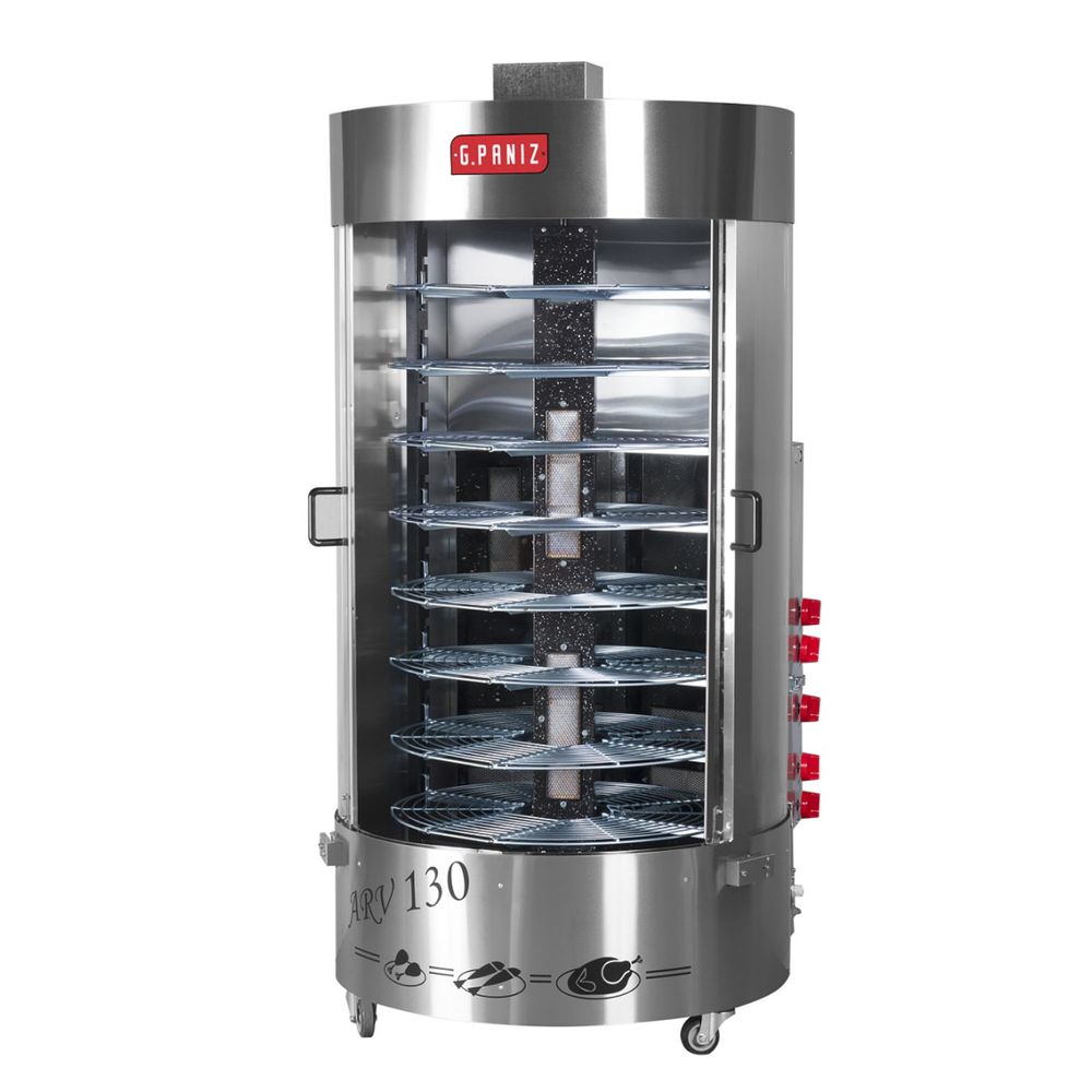 O Assador Rotativo Vertical ARV130QC da G.Paniz é a solução ideal para quem busca alto desempenho, agilidade e qualidade no preparo de frangos assados. Projetado para uso comercial e profissional, este equipamento alia robustez, eficiência e praticidade no dia a dia.