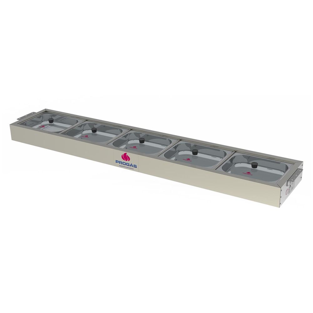 Apresentamos o Buffet Frio 5 Cubas Progás PRBF-50GN com Tampa de Vidro, a solução ideal para quem busca sofisticação e praticidade na apresentação de alimentos frios.