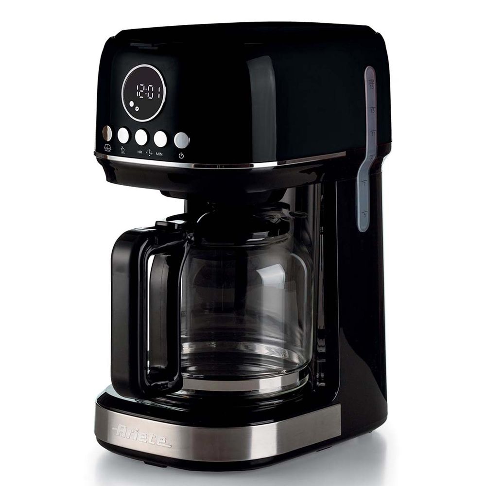 Use a Cafeteira Elétrica Moderna Programável Ariete 220v Preta para preparar um delicioso café coado a qualquer hora do dia. Defina a distribuição do café através do visor LCD e espere que o café seja distribuído. Graças à base com aquecimento, seu café permanece quente até que você queira servi-lo. Com um único ciclo você pode servir até 15 xícaras de café graças à alta capacidade da jarra de vidro temperado. O nível da água é visível e os filtros são removíveis para garantir uma limpeza fácil e eficaz.