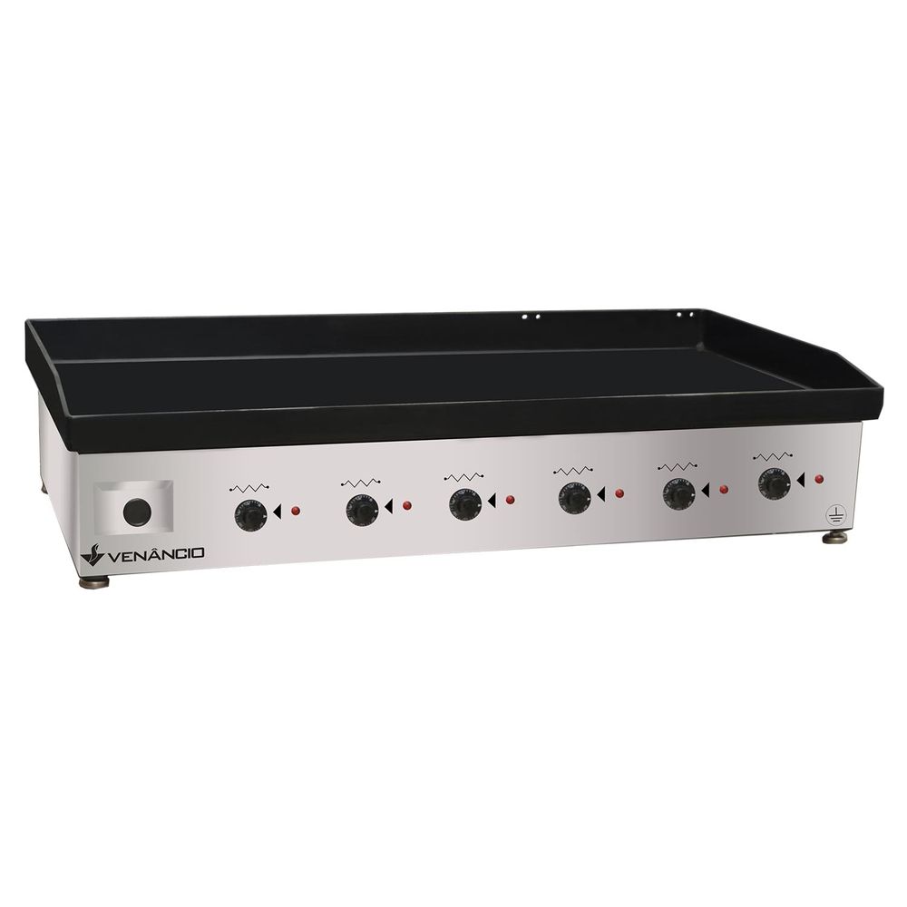 A Chapa Elétrica Deguste CE140 da Venâncio é a escolha perfeita para estabelecimentos que precisam de alto desempenho, robustez e eficiência no preparo de alimentos grelhados, como hambúrgueres, bifes, sanduíches e mais. Com 6 resistências elétricas de 1.800W cada, ela garante aquecimento rápido e uniforme em toda a superfície, otimizando a produtividade da sua cozinha