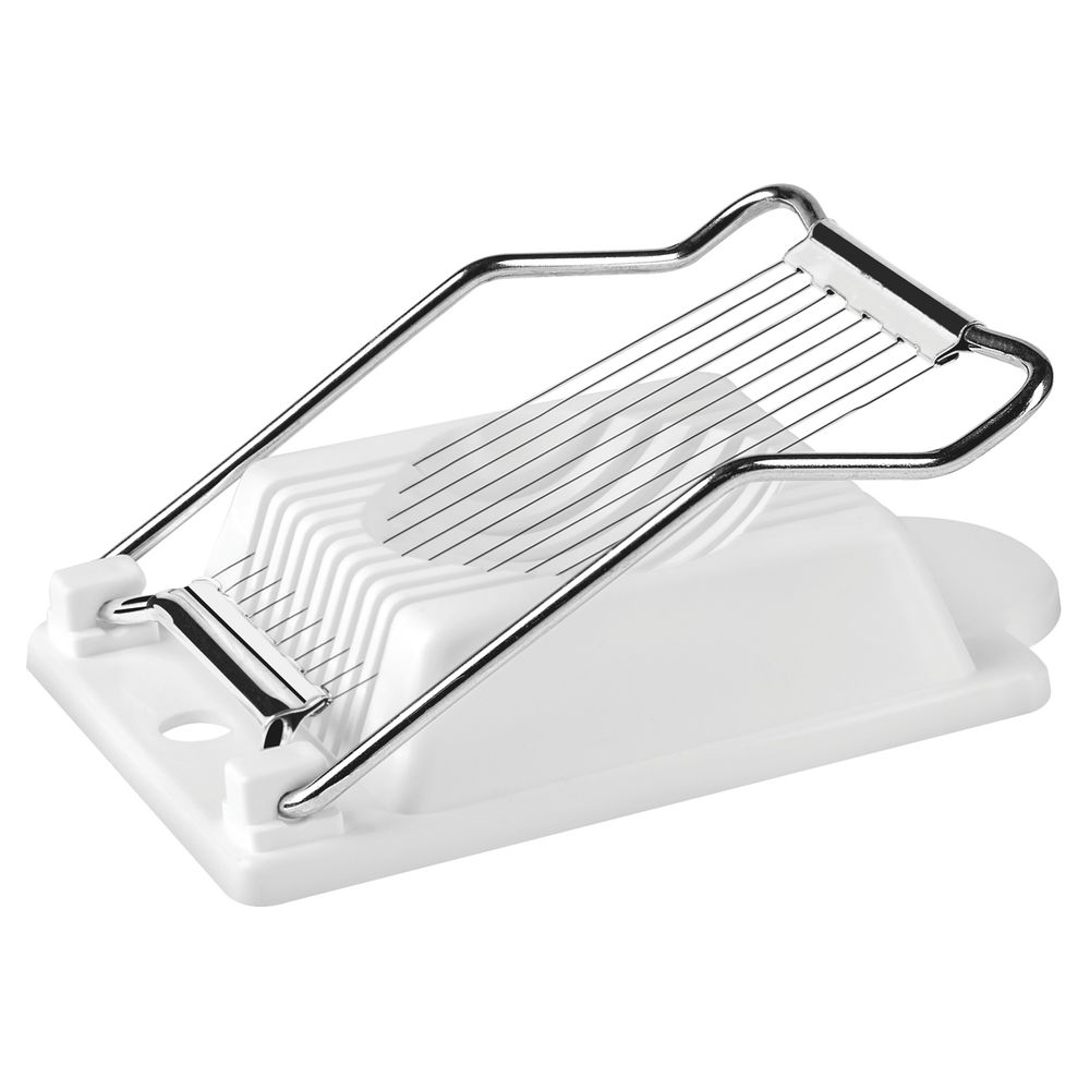 Com o Fatiador de Ovos Tramontina Branco em Aço Inox e Polipropileno da linha Utilità você poderá preparar pratos e receitas com muita facilidade. A peça permite que você fatie ovos com a mesma espessura. O fatiador é produzido com arame em aço inox, altamente durável, e base de polipropileno. Os materiais proporcionam alta durabilidade para o fatiador.
