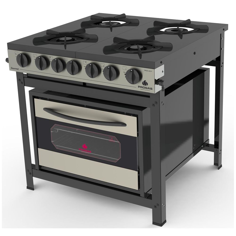 Com design inovador, o Fogão Gourmet PRGE402F Progás 4 Bocas com Forno possui estrutura feita em aço com acabamento em pintura epóxi.