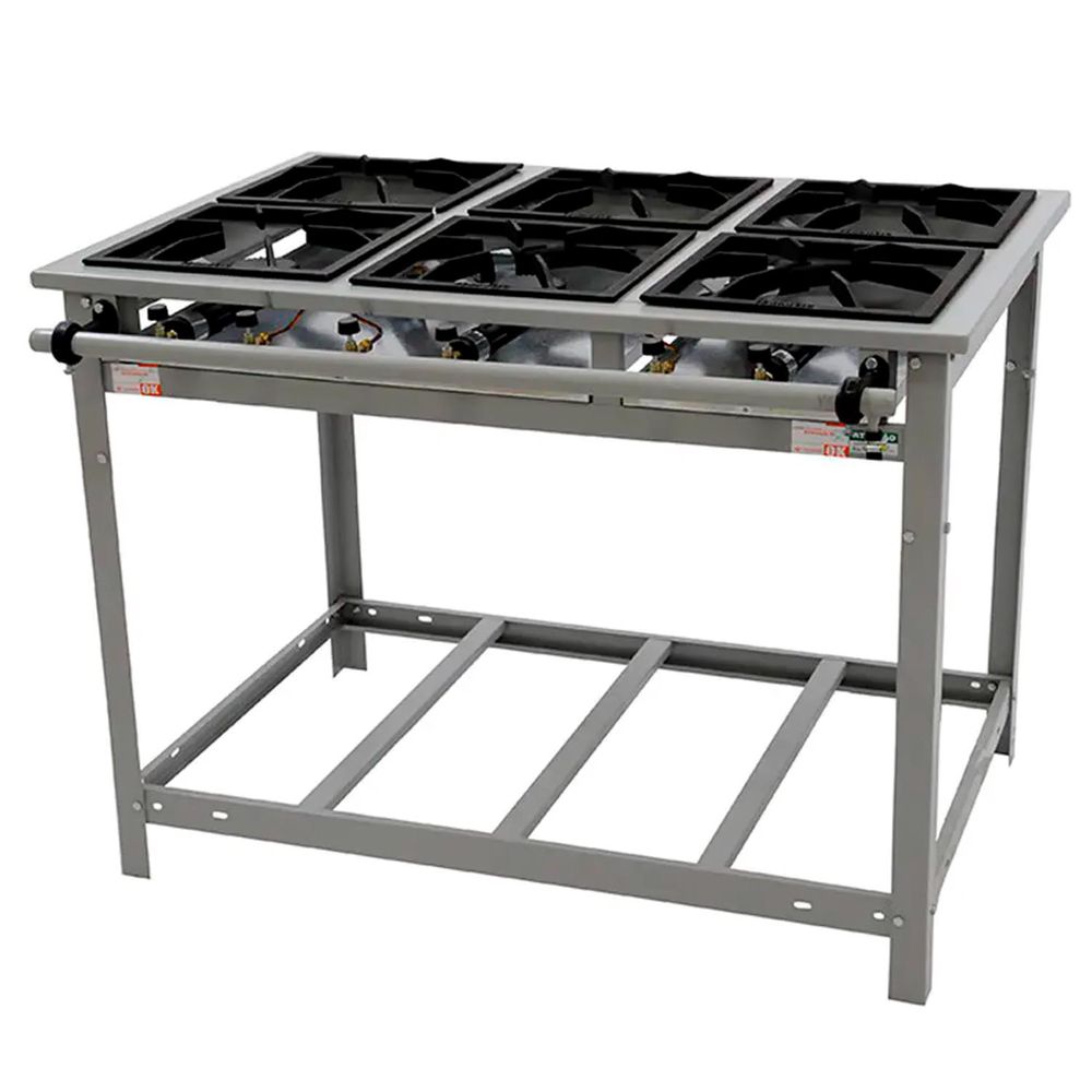 Desempenho Ágil: Seis queimadores permitem o uso simultâneo de várias panelas, otimizando o processo de cozimento.