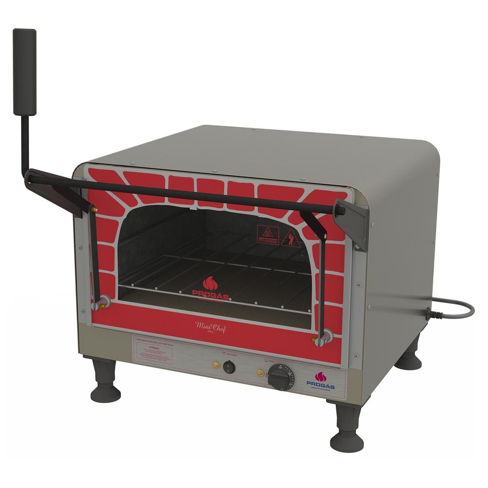 Suas receitas ganharão um toque profissional com o Forno Elétrico Refratário Mini Chef 220v Progás, que permite que você asse ou gratine pizzas, fogazza, pães de queijo, assar e gratinar lasanhas, carnes, crosta pururuca, assim como doces, bolos, folhados e outros.