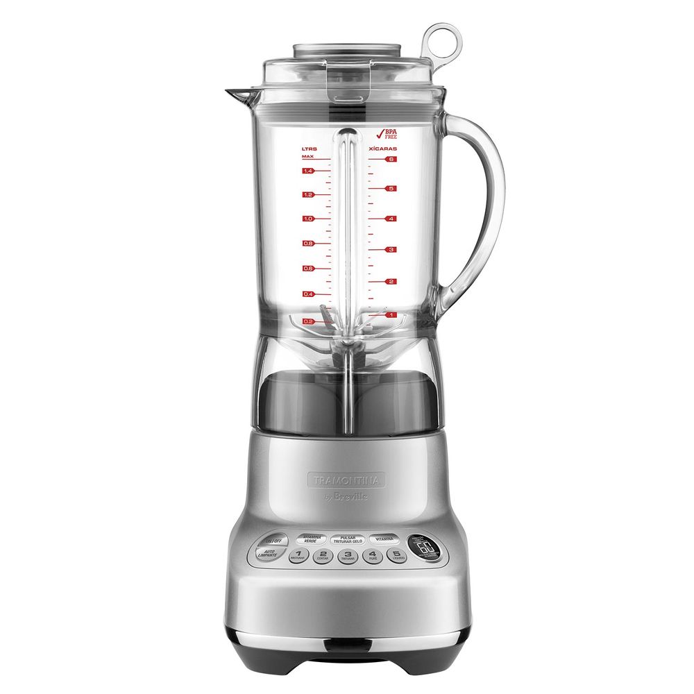 Liquidificador Smart Gourmet 1,5 Litros 220v Prata Tramontina da linha de Eletroportáteis Tramontina by Breville irá proporcionar para sua cozinha uma beleza única e um design exclusivo, a transformando em um espaço moderno. Ele trará ainda mais praticidade nos seus preparos, pois conta com desempenho de trituração uniforme, lâminas para trabalhos pesados, tampa auxiliar com anel puxador para fácil remoção, tampa medidora interna e painel de controle. Para garantir a sua durabilidade a sua base é produzida em alumínio fundido, o copo de tritan sem BPA, resistente a impactos, à prova de quebras e pode ser utilizado em lava-louça. Contando também com proteção contra sobrecarga. Seu design fará toda a diferença no ambiente.