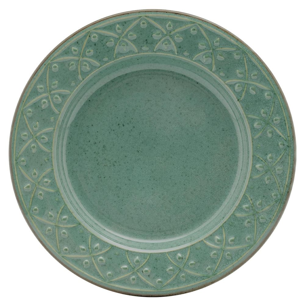 Tradicional com toques de delicadeza. A aba dos pratos recebe uma decoração em alto-relevo inspirada nas belíssimas pinturas mehndi ou de henna, que são muito tradicionais e usadas nas cerimônias de casamento na Índia. A Mehndi também é conhecida como pintura de henna porque a “tinta” usada é feita com o pó da henna, um arbusto muito comum em regiões quentes e secas. A cor Malaquita foi inspirada na pedra de mesmo nome que é conhecida por sua tonalidade verde e seu poder de equilibrar ambientes. A coleção ainda recebe filetes na cor marrom decorando a borda de cada peça.