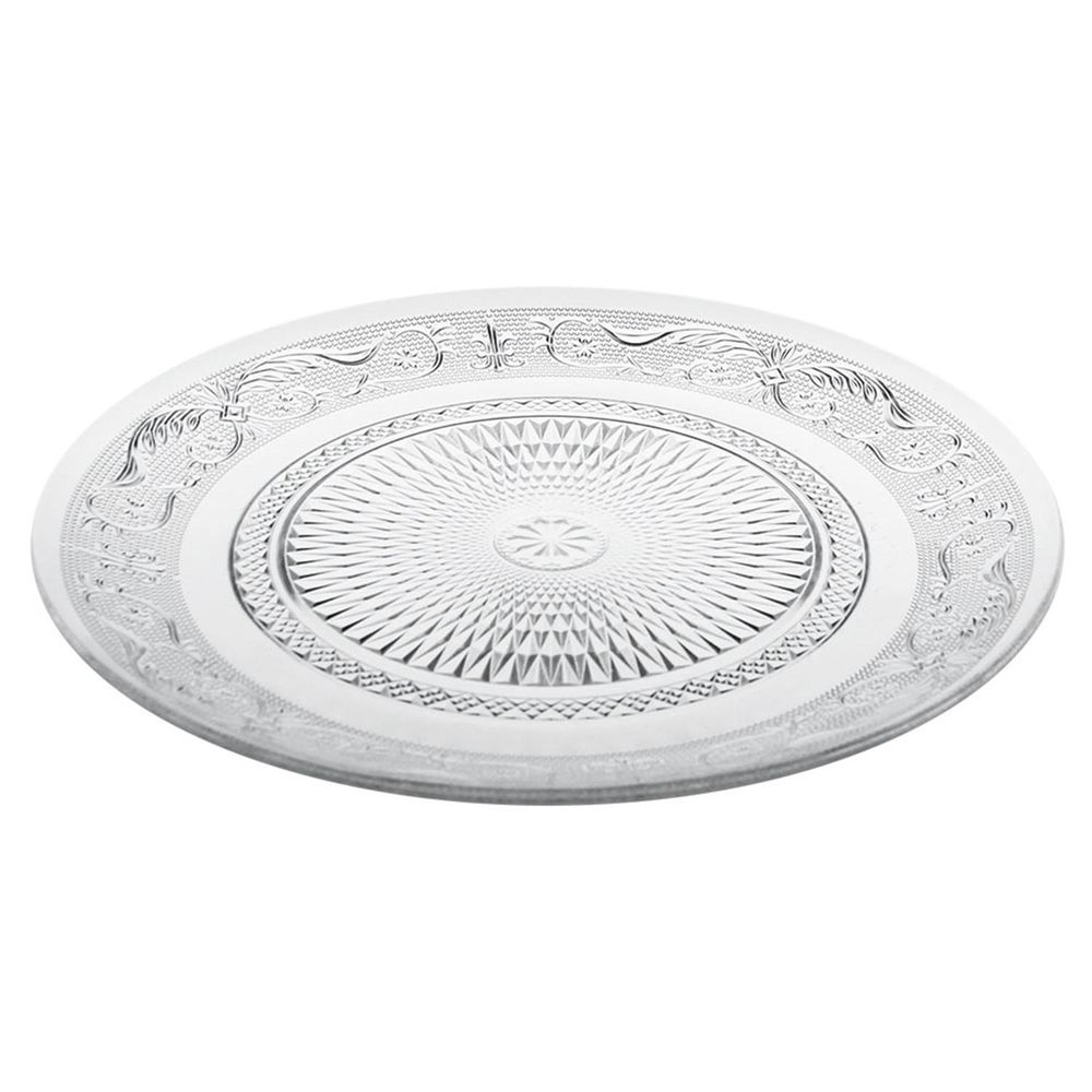 Um prato para bolo de inspiração vitoriana em vidro, com um diâmetro imponente de 25 centímetros, evoca a elegância requintada dos salões da era vitoriana. Seu design é uma fusão harmoniosa de sofisticação e delicadeza, com bordas trabalhadas artisticamente em padrões florais entrelaçados. O vidro transparente, brilhante e lustroso, reflete a luz de maneira encantadora, criando uma aura de glamour nostálgico. Este prato para bolo não apenas serve como uma peça funcional, mas também como uma obra de arte decorativa que transporta seus convidados para uma época de opulência e refinamento.