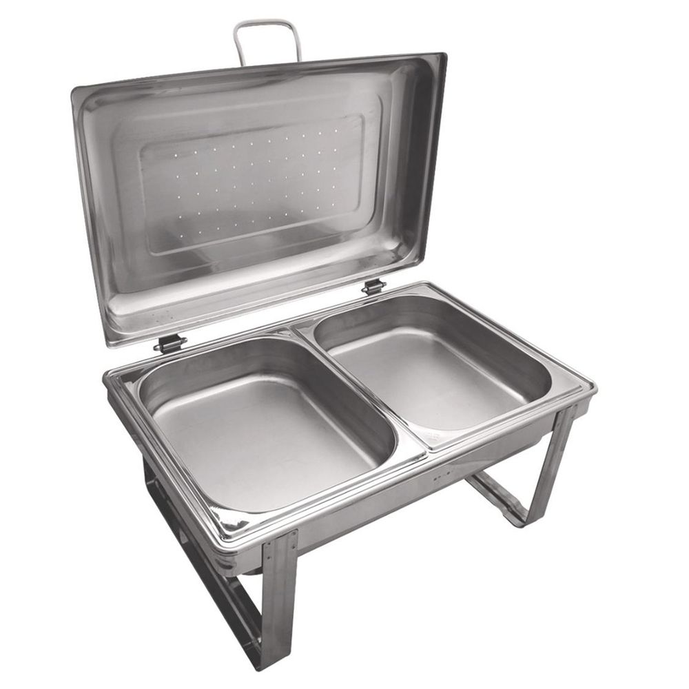 O Rechaud Retangular Savoy vem com Banho Maria e queimador. É um produto 100% Aço Inox, durável, resistente e fácil de limpar. Acompanha duas Cubas GN 1/2. Não molha a mesa! A água condensada na tampa escorre sobre a borda retornando para o interior da cuba de Banho Maria.