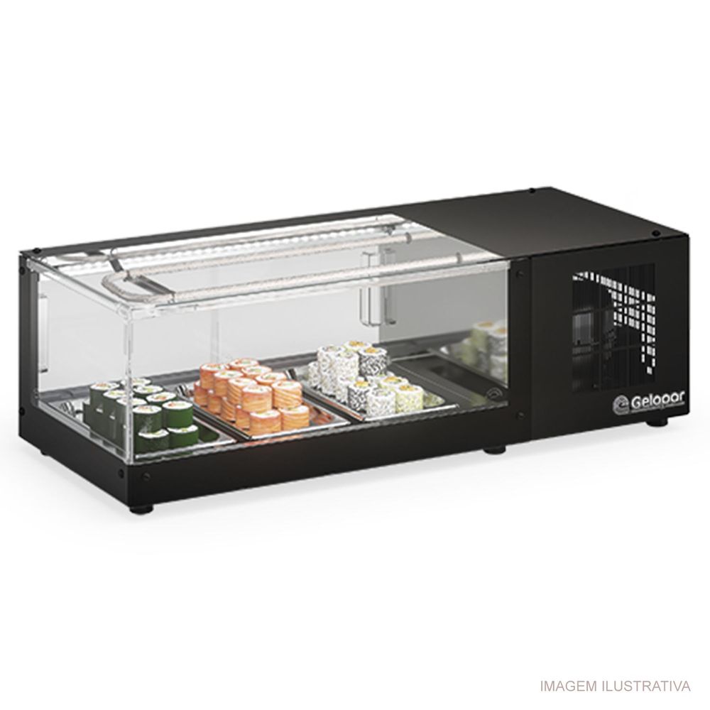 Ideal para padarias, confeitarias, restaurantes e lanchonetes, a Vitrine Refrigerada de Bancada GVRS-100 PR Gelopar 220V é projetada para a exposição e conservação de alimentos em temperatura controlada, como sushi, frios, laticínios, sobremesas e bebidas. Seu design moderno e funcionalidade garantem a melhor apresentação e organização dos produtos.